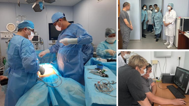 В рамках мониторинга врачи Казахского научно-исследовательского института онкологии и радиологии также дали экспертную оценку историй болезни и проверили соответствие лечебно-диагностических клинических протоколов в Кызылординском областном онкологическом центре. Здесь же прошла операция с участием врачей-хирургов онкологического центра и врача-онколога абдоминального онкологического отделения КазНИИОиР Серика Менбаева.